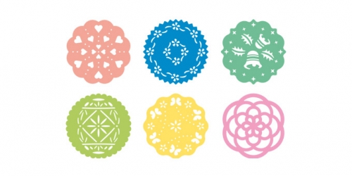 • Seis marcadores de copo coloridos com padrões recortados