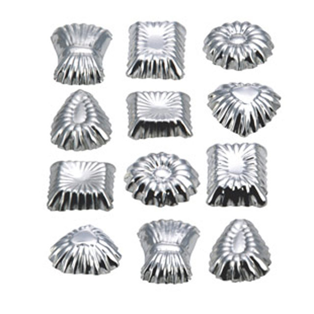 • Formas metálicas prateadas para pastelaria com diversos formatos e texturas