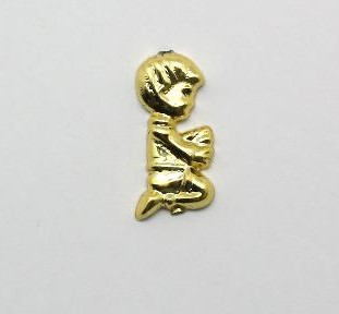 • Pingente dourado em forma de criança ajoelhada com as mãos juntas