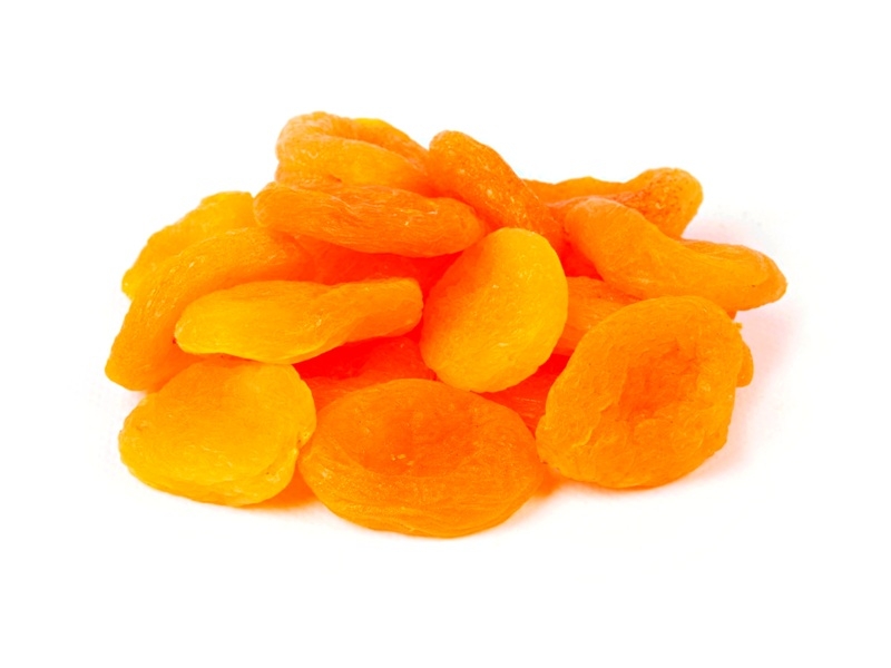 • Conjunto de damascos secos alaranjados sobre fundo branco