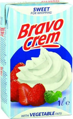 • Embalagem de natas Bravo Crem com morangos e chantilly