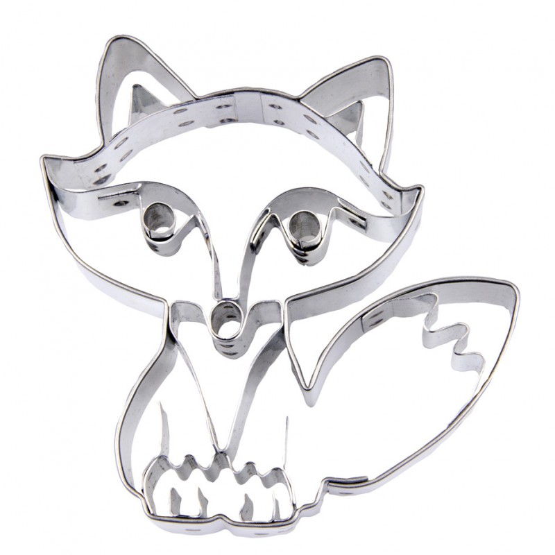 • Cortador de bolachas em forma de raposa em metal prateado.