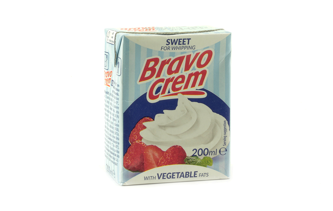 • Embalagem de creme doce Bravo Crem 200 ml com morangos e creme batido