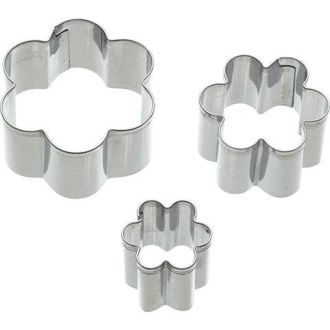 Três cortadores de biscoito em formato de flor, aço inoxidável