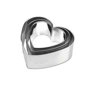Três formas de aço inoxidável em forma de coração empilhadas