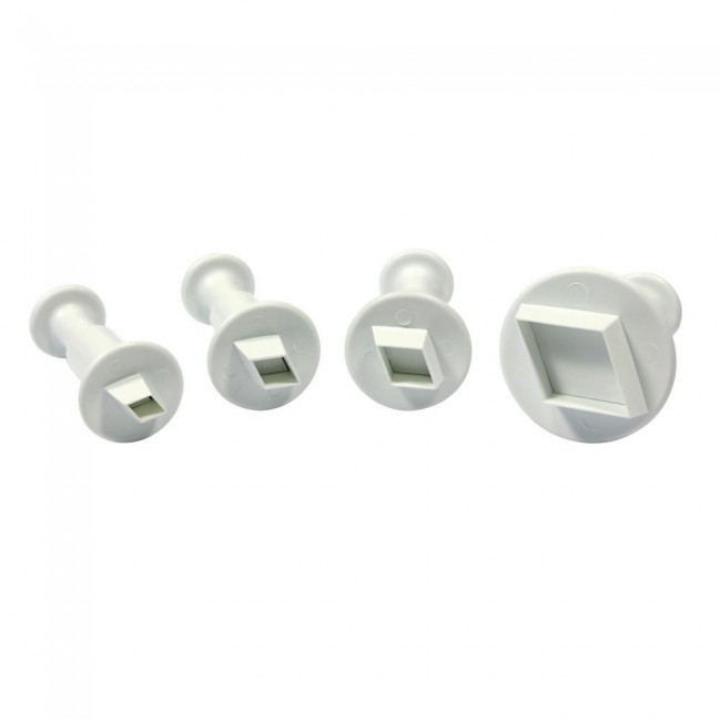 • Quatro cortadores de massa quadrados de plástico branco de vários tamanhos