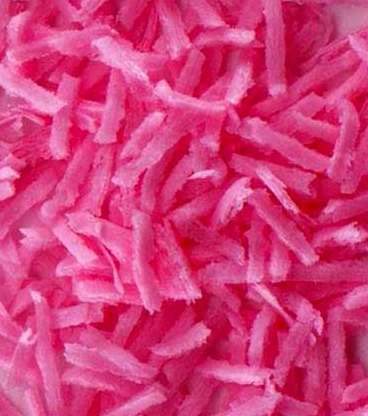 • Raspas ou lascas cor-de-rosa com textura fibrosa