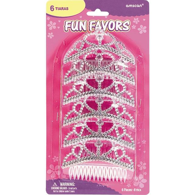 6 tiaras decorativas prateadas em embalagem rosa amscan Fun Favors