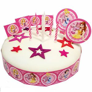 • Bolo decorado com imagens das Princesas Disney em cores rosa e branco