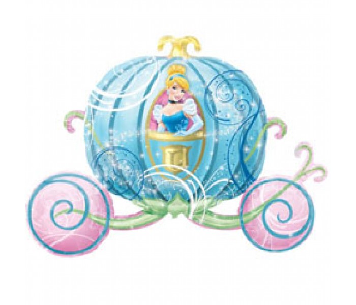 • Carruagem azul claro e rosa com figura da Cinderela