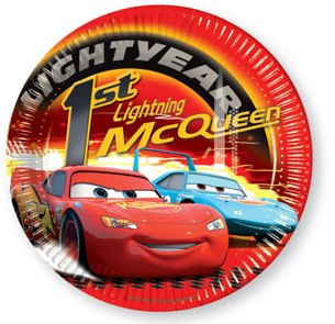 Prato de plástico redondo com design do filme Cars e texto Lightning McQueen