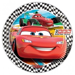 • Prato redondo de papel dos carros do filme Cars com borda quadriculada preta e branca