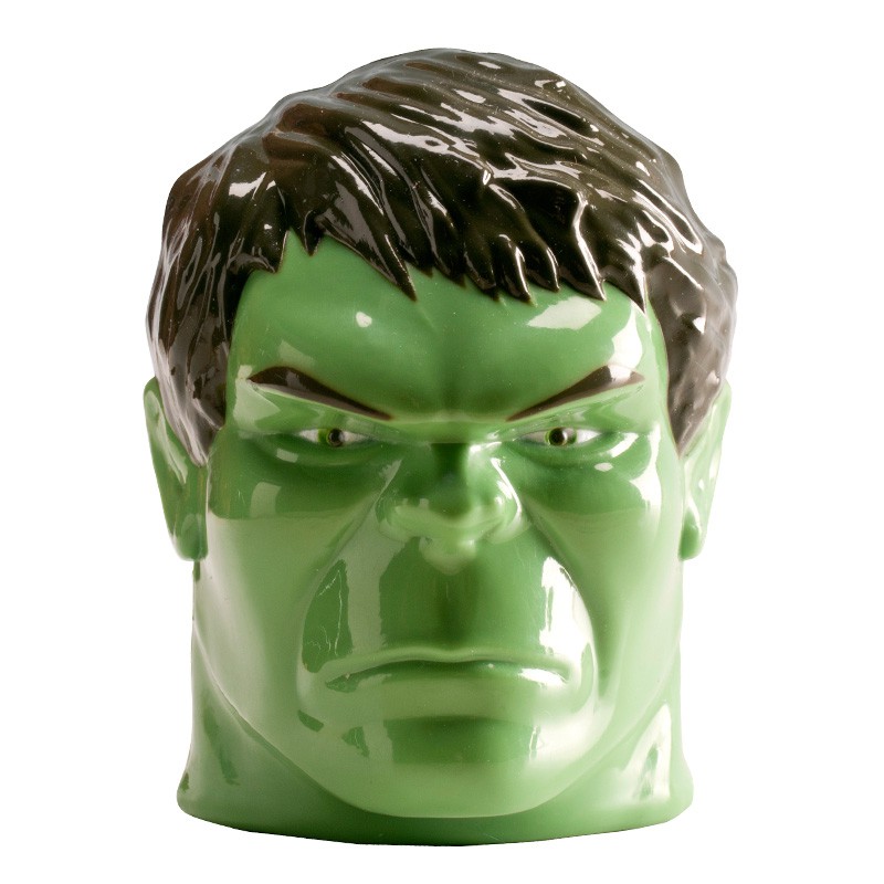 • Caneca cerâmica formato cabeça Hulk verde com cabelos castanhos escuros