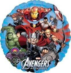 Balão redondo com imagem dos Avengers Marvel e texto 'AVENGERS ASSEMBLE'