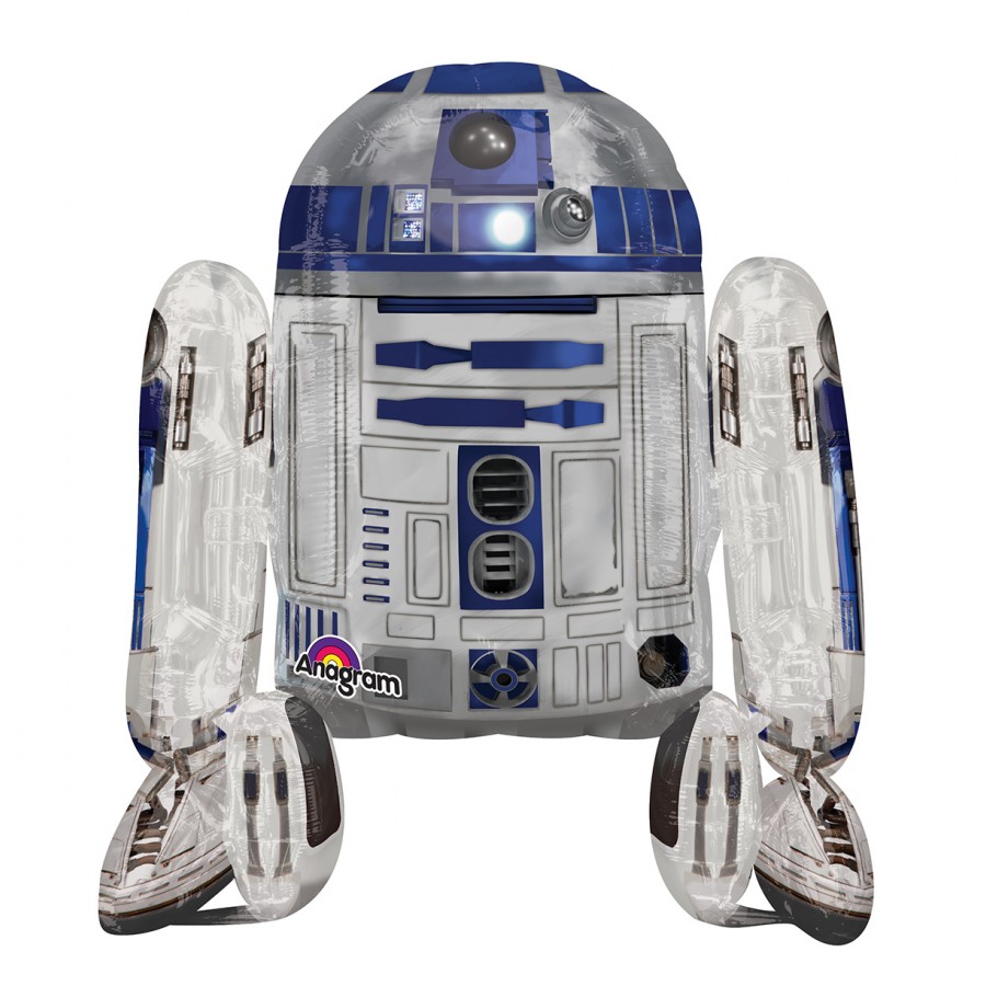 • Balão insuflável do robô R2-D2 com cores cinza, azul e preto