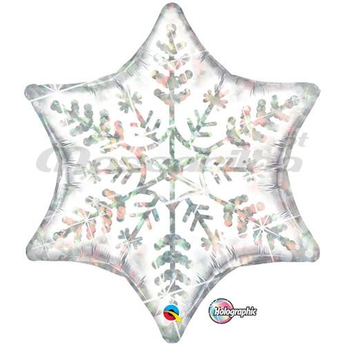 • Balão estrela com padrão de floco de neve holográfico prateado