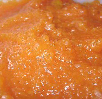 • Puré ou pasta laranja com textura granulada