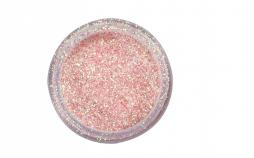 • Pó brilhante rosa claro com brilho prateado em recipiente redondo