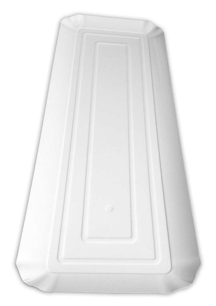 • Prato descartável branco retangular com relevo e bordas elevadas